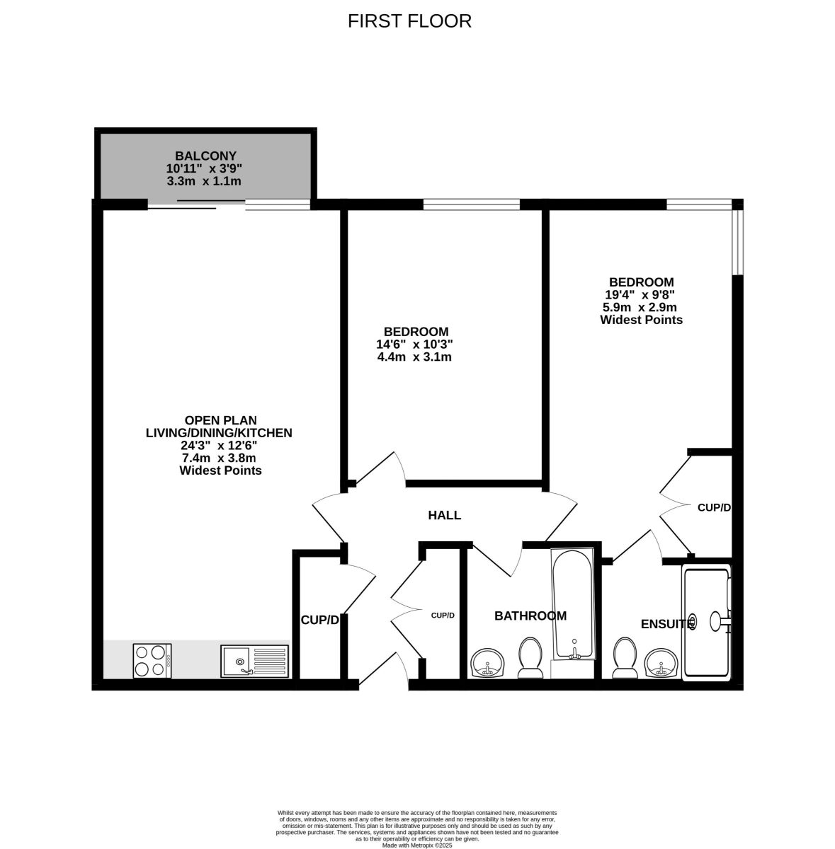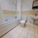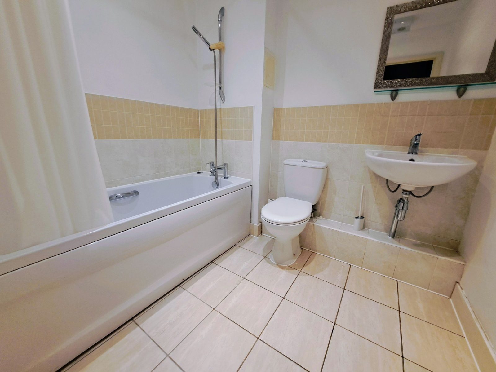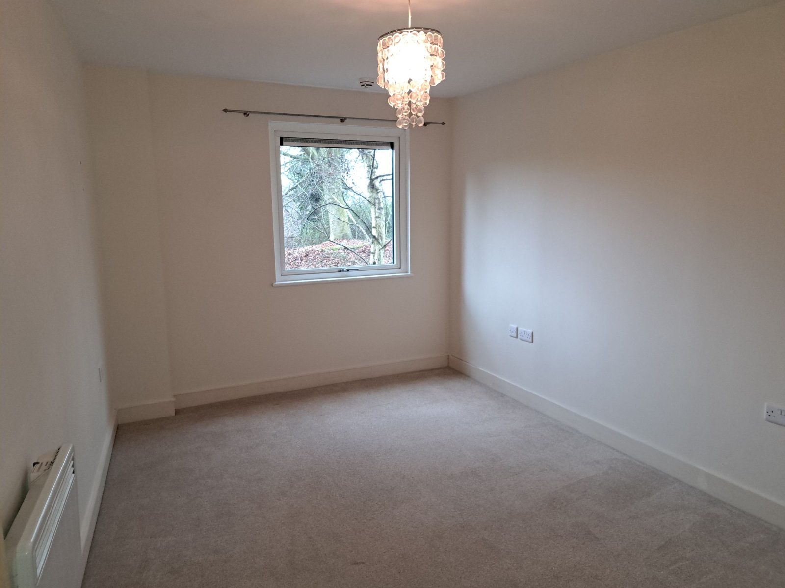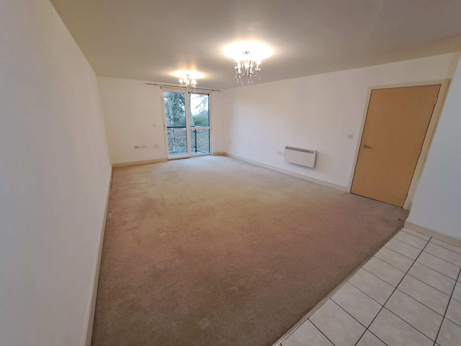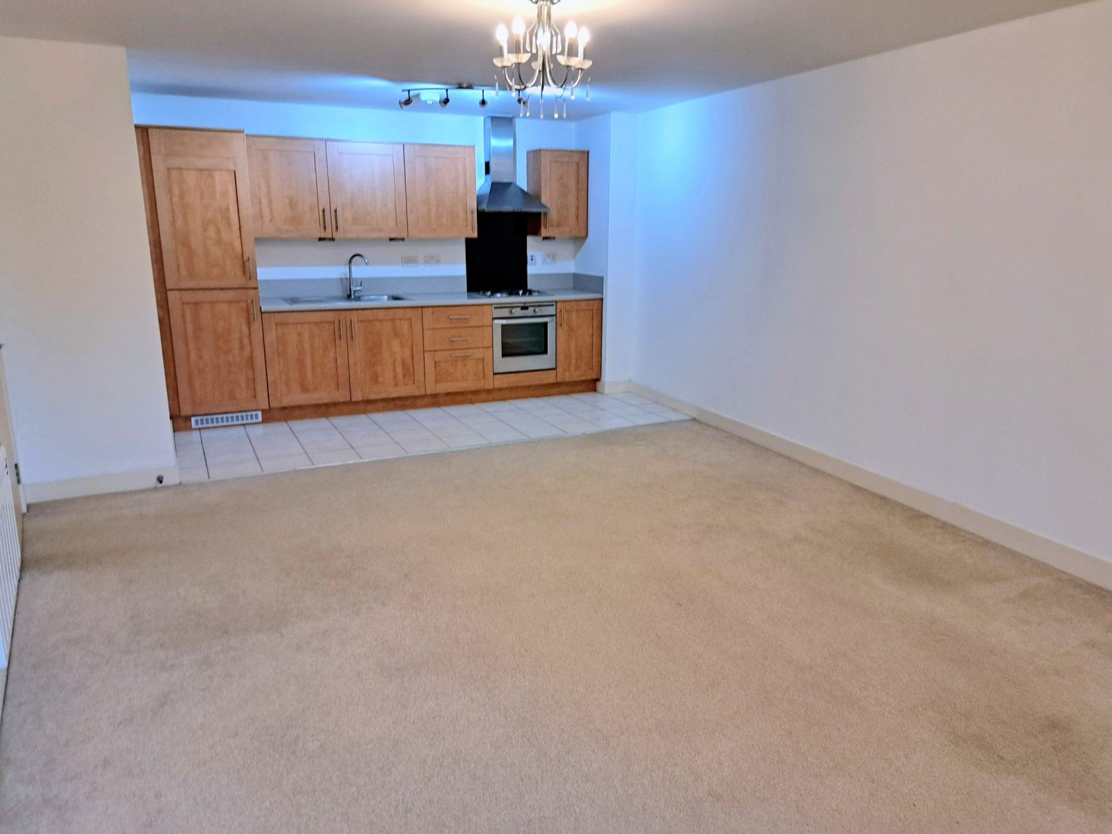 The apartment comprises two double bedrooms, with the master featuring a modern ensuite shower room. The spacious open-plan lounge, dining, and kitchen area leads to a private balcony, offering stunning views over the communal gardens. A contemporary family bathroom completes the accommodation.