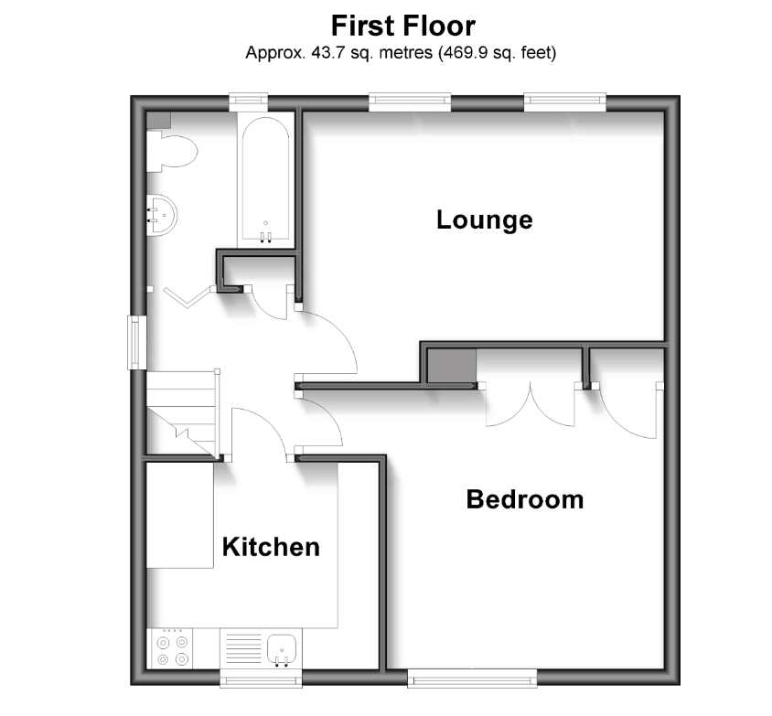 This home features a welcoming layout with a generous living room, a fitted kitchen, double bedroom, and a bathroom. Also, being positioned on the first floor provides a sense of privacy and pleasant views over the garden at the rear