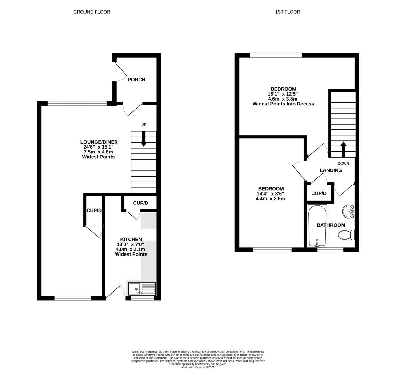 The property features a spacious lounge/diner, a practical kitchen, two well-proportioned bedrooms, and a family bathroom. Externally, there are good-sized front and rear gardens. Offered with no onward chain.