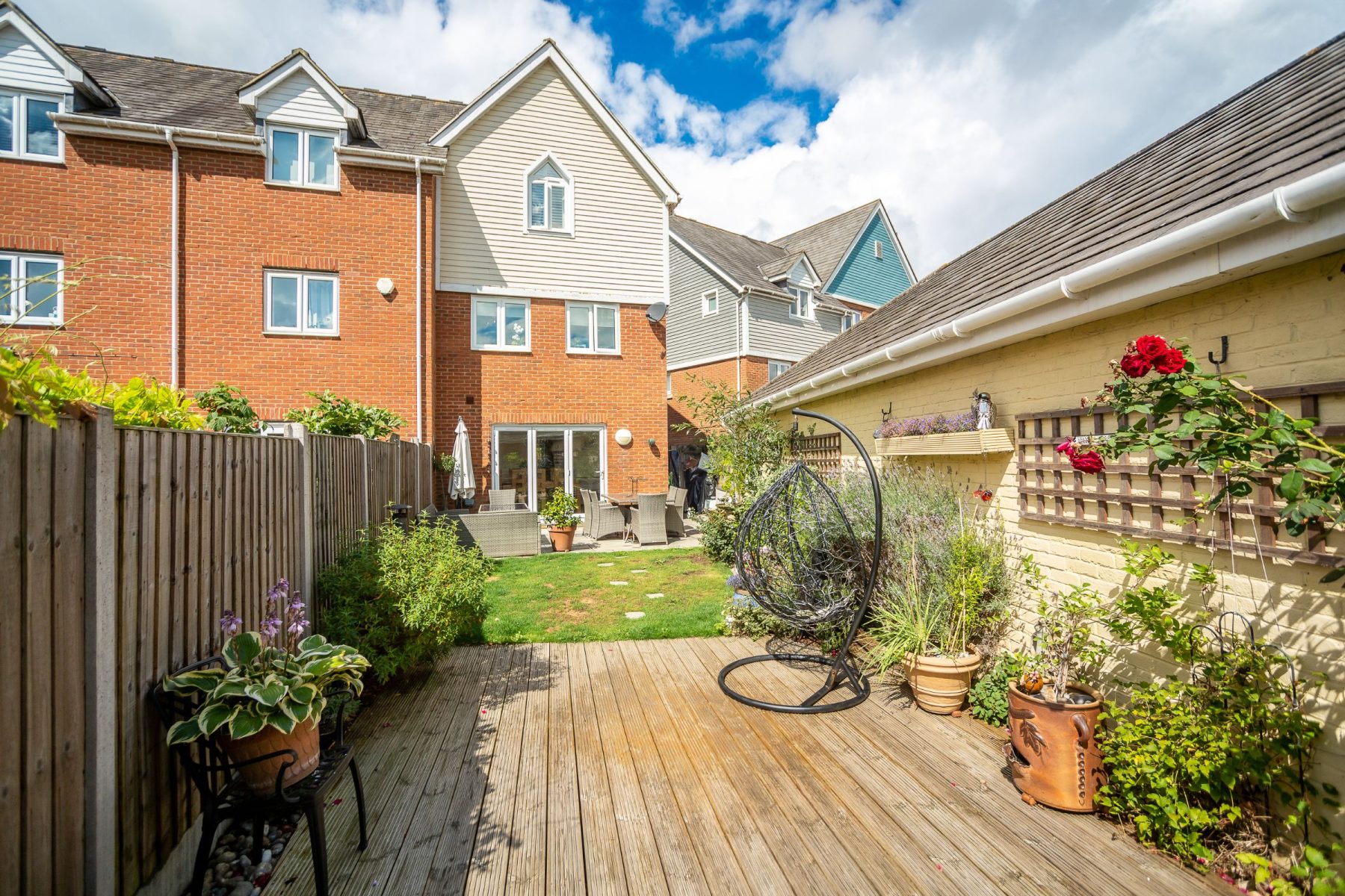 A beautifully presented and deceptively spacious four-bedroom townhouse, offering flexible family living across three floors with partial lake views and a high-quality finish throughout.