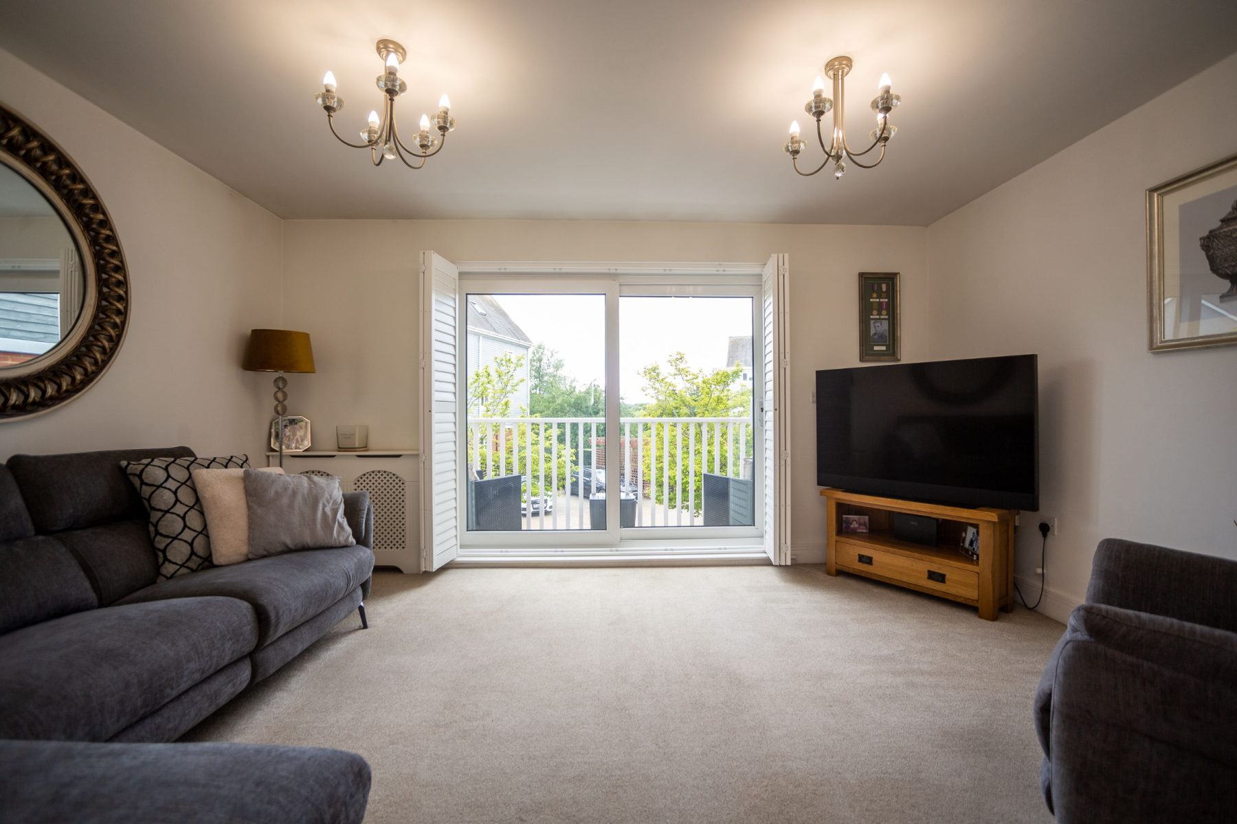 Upstairs, the second floor is home to the impressive master bedroom with fitted sliding wardrobes, a Juliet balcony with lake views, and a private en suite. Bedroom 2 is positioned at the rear and also benefits from its own en suite shower room, making it ideal for guests or older children.